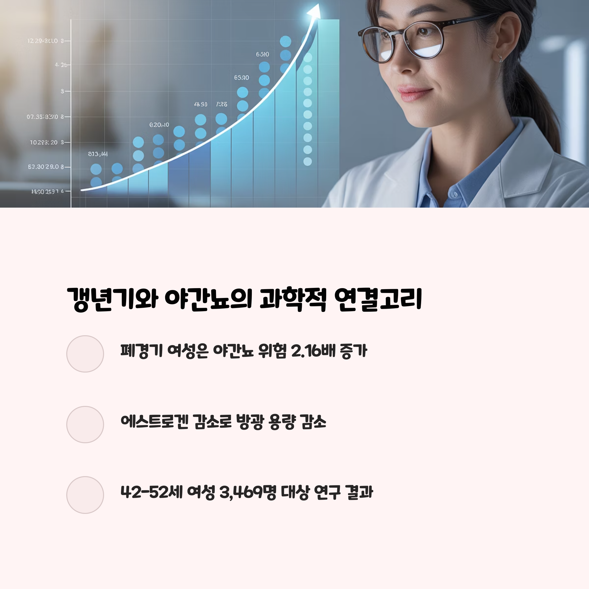 본 내용은 강북삼성병원 코호트연구소가 2020~2023년 42~52세 한국 여성 3469명을 분석한 결과, 폐경 이행기엔 야간뇨가 1.92배, 폐경 후엔 2.16배 증가했다는 연구와, 국립정신건강센터의 수면장애 관리 권고 등 국내 전문기관의 최신 자료를 종합해 정리한 것입니다.