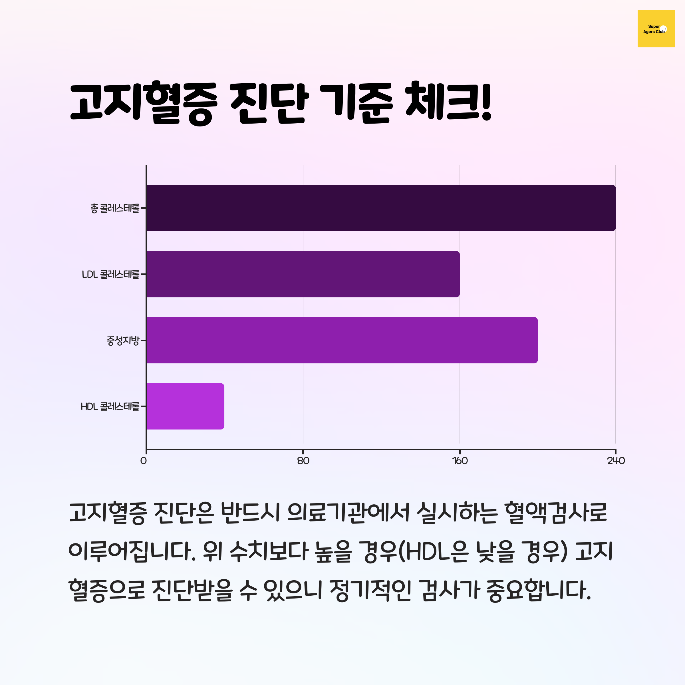 | 총 콜레스테롤 | 240mg/dL 이상 |