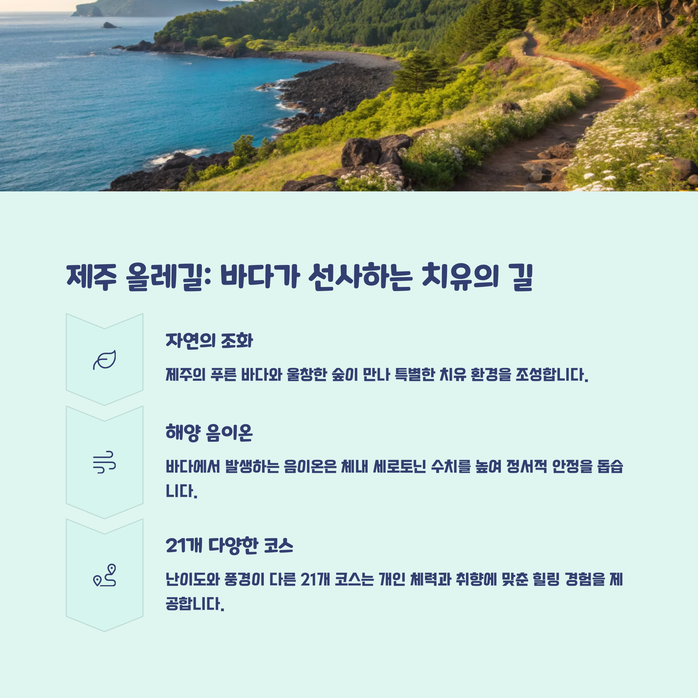 1. 제주도 올레길: 바다와 함께 걷는 치유의 길