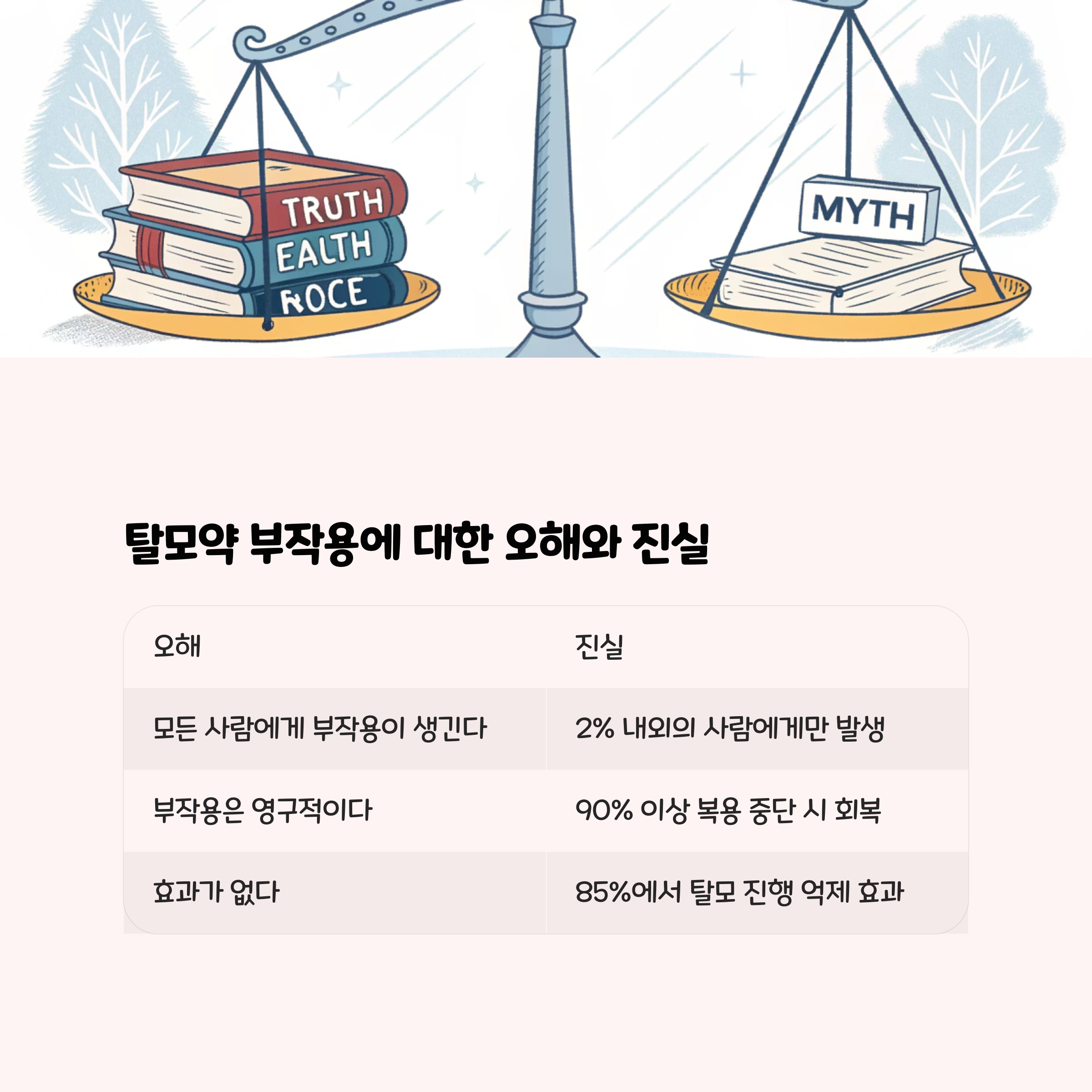 탈모 치료제 복용으로 인한 부작용은 일부에서만 나타나며, 대부분 일시적이고 회복 가능하다는 점이 최신 연구로 확인되고 있습니다. 부작용이 두렵다고 치료를 미루기보다는, 정확한 복용법과 정기적인 건강 관리, 의사와의 긴밀한 소통을 통해 안전하게 탈모 치료를 이어가시길 권합니다. 탈모약 복용, 올바른 방법으로 현명하게 관리하면 부작용 걱정 없이 건강한 모발을 지킬 수 있습니다!