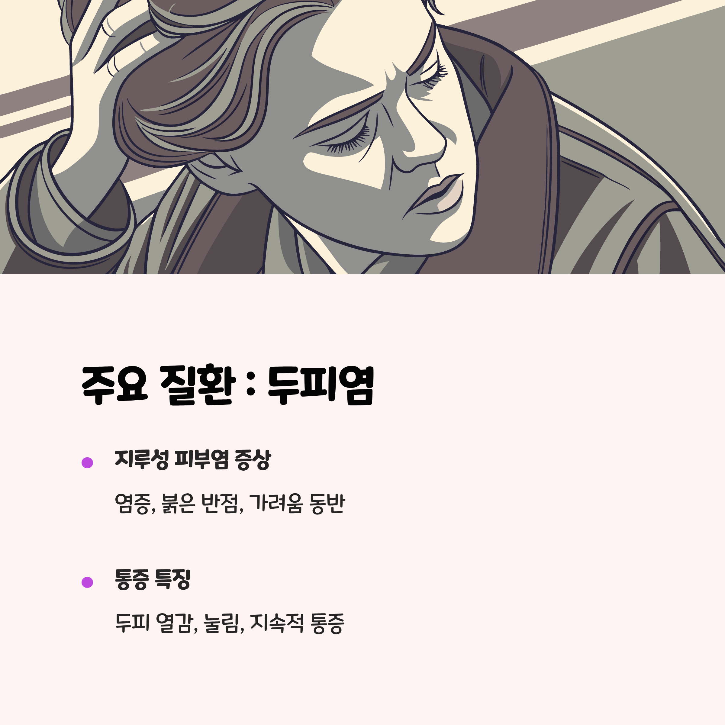 | 두피 자극·염증 | 두피염 지루성 피부염 |