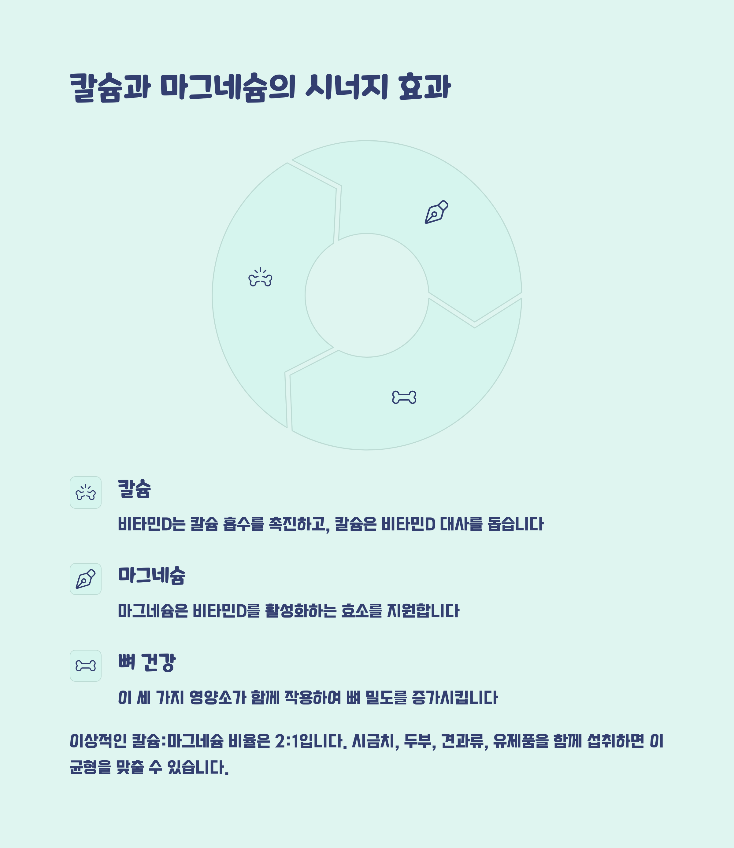 | 강화우유(200ml) + 아몬드(10알) | 칼슘 240mg + 마그네슘 25mg | 흡수율 50% 증가 |
