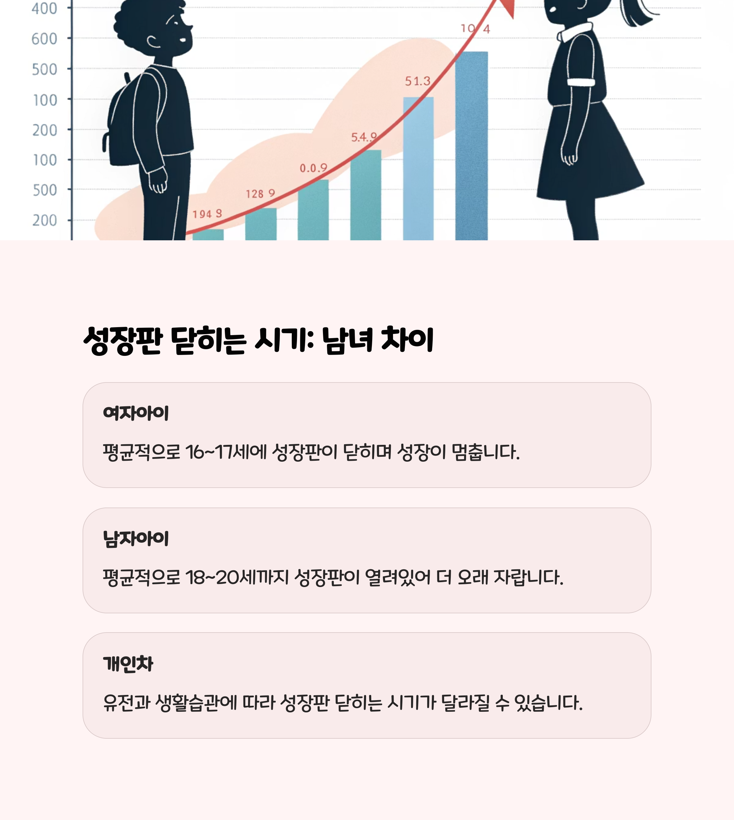 키 성장에 대한 고민은 많은 부모님과 청소년이 겪는 현실적인 문제입니다. 또래보다 키가 작아 걱정이 되거나, 사춘기가 빨리 찾아와 성장판이 일찍 닫히는 건 아닐지 불안해하는 분들이 많습니다. 정확한 성장판 닫힘 시기와 집에서 확인할 수 있는 방법을 알고 있다면, 남은 성장 기회를 놓치지 않고 효과적으로 대비할 수 있습니다.