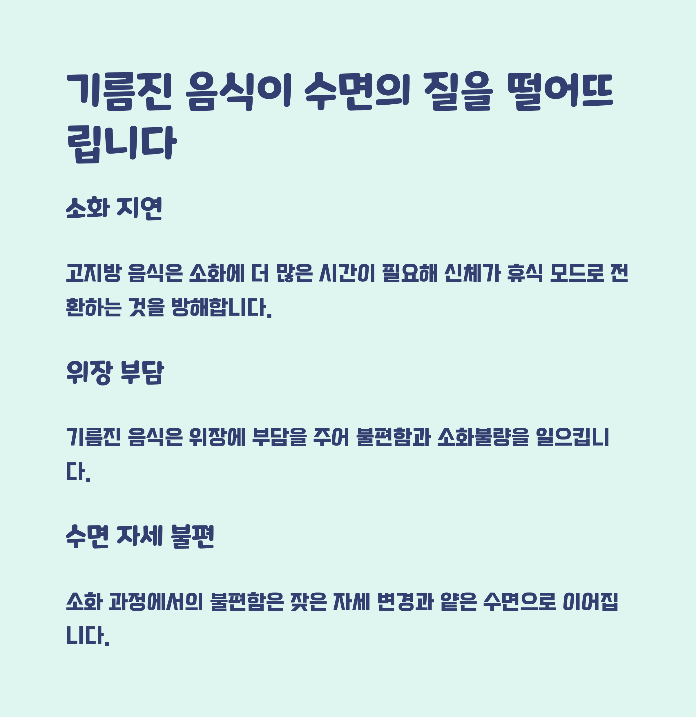 Q. 기름진 음식이 수면에 미치는 영향은 무엇인가요?