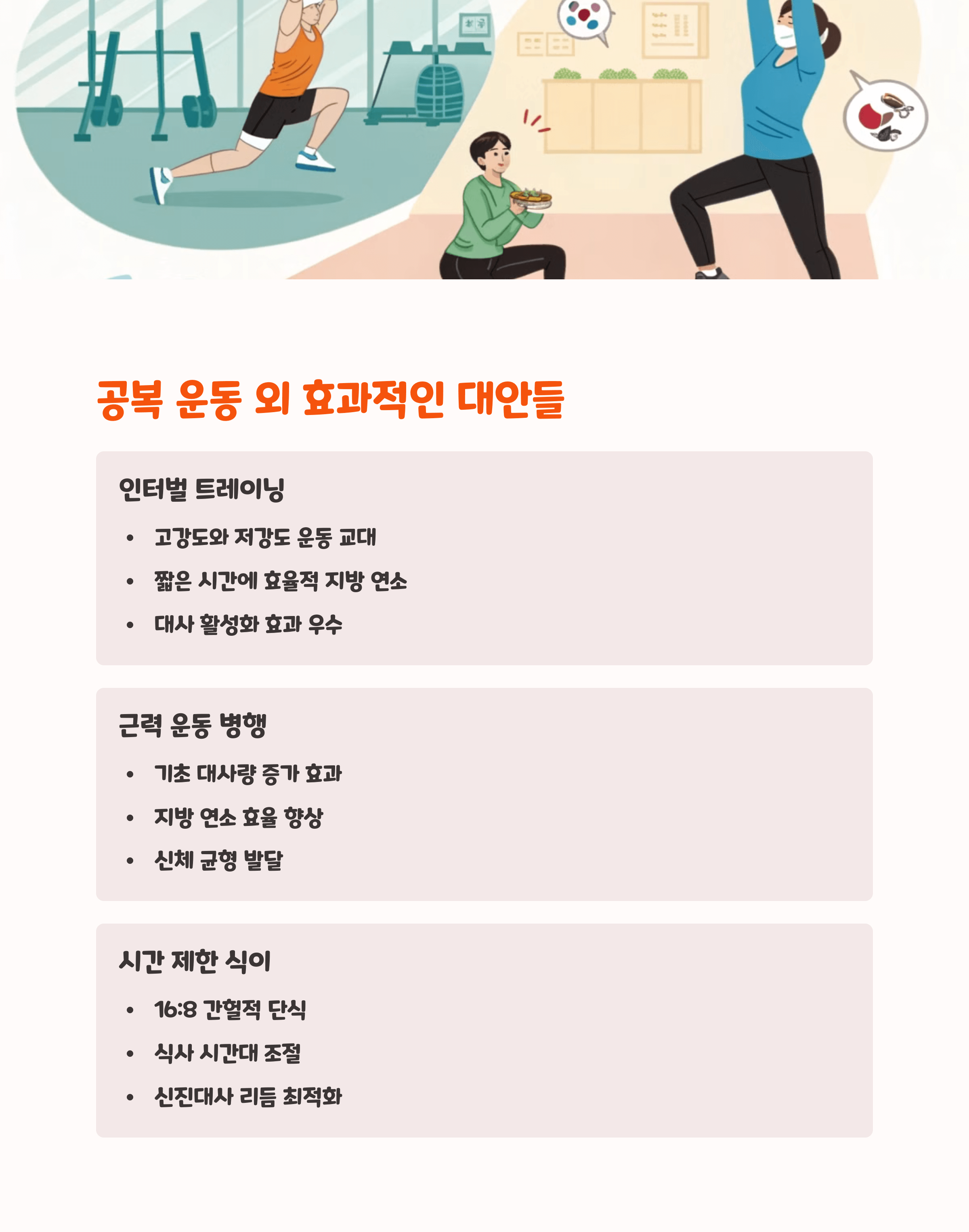 | 공복 운동 효과 | 근손실 위험 | 지방 연소율 |