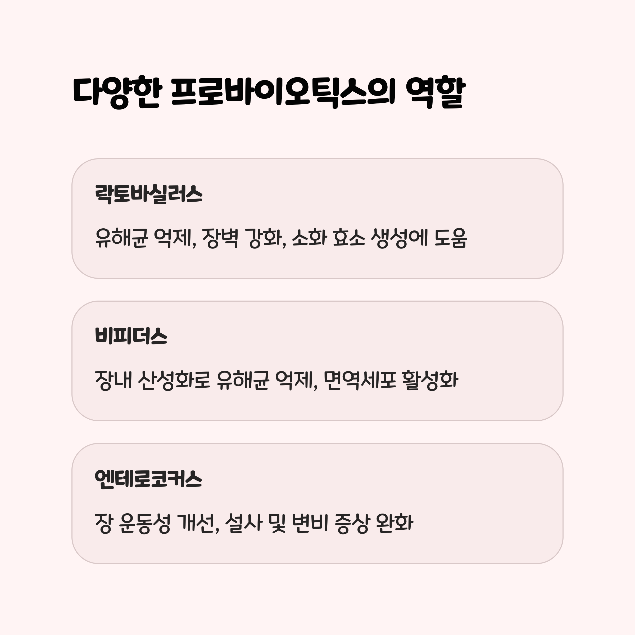 락토바실러스 루테리(면역력), DDS-1(피부 건강, 아토피), LGG(장 건강) 등 특정 기능에 특화된 균주가 있는지 확인하면 더욱 좋습니다. 또한, 균주별 보장균수(CFU)도 체크해야 하며, 효과를 보려면 최소 30억~50억 CFU 이상을 권장합니다.