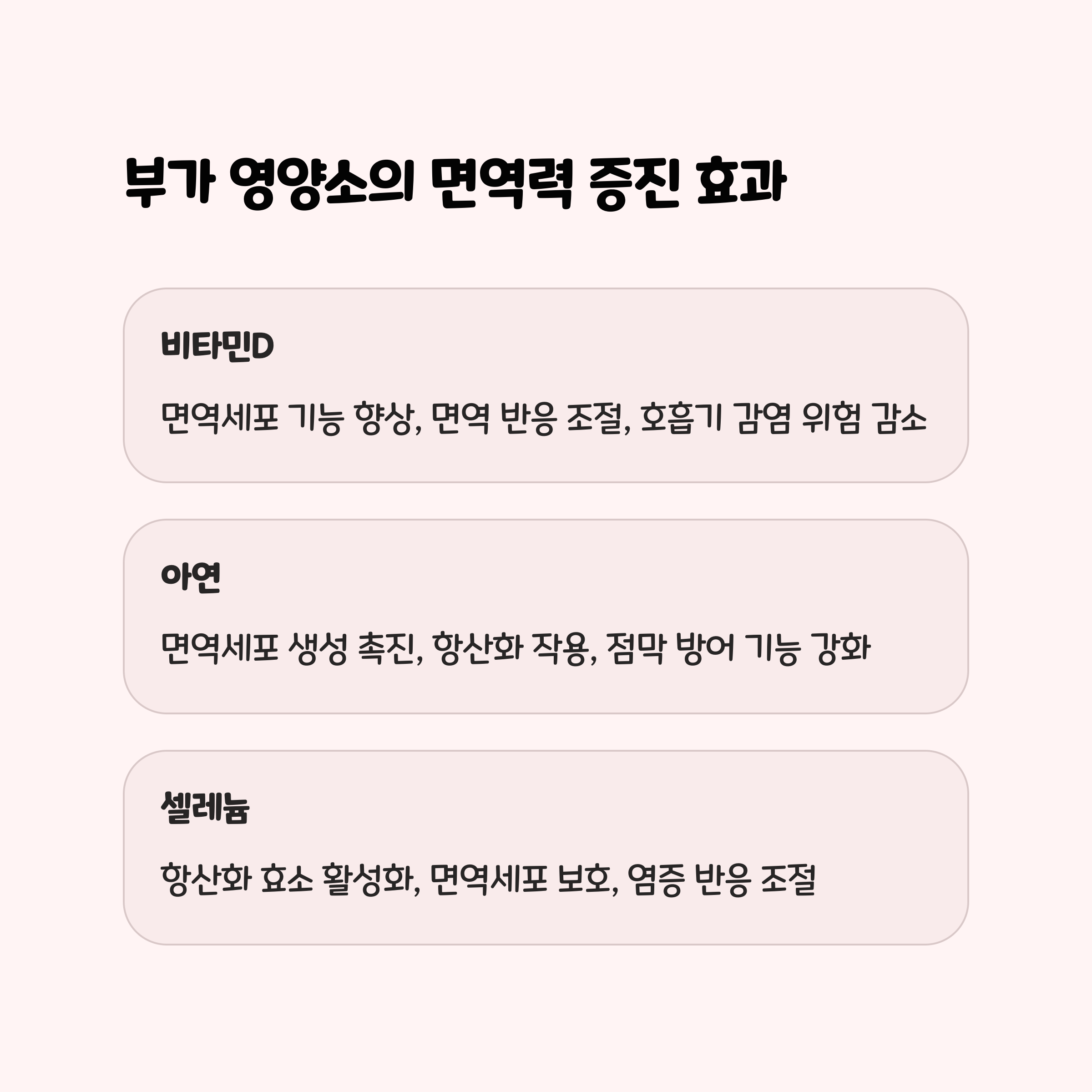 아연은 면역세포의 정상적인 기능에 꼭 필요한 미네랄입니다. 아연이 포함된 유산균 제품은 감기 등 잦은 질병에 노출된 아이들에게 추천되며, 실제로 아연을 함께 보충하면 면역력 증진 효과가 더욱 높아집니다.
