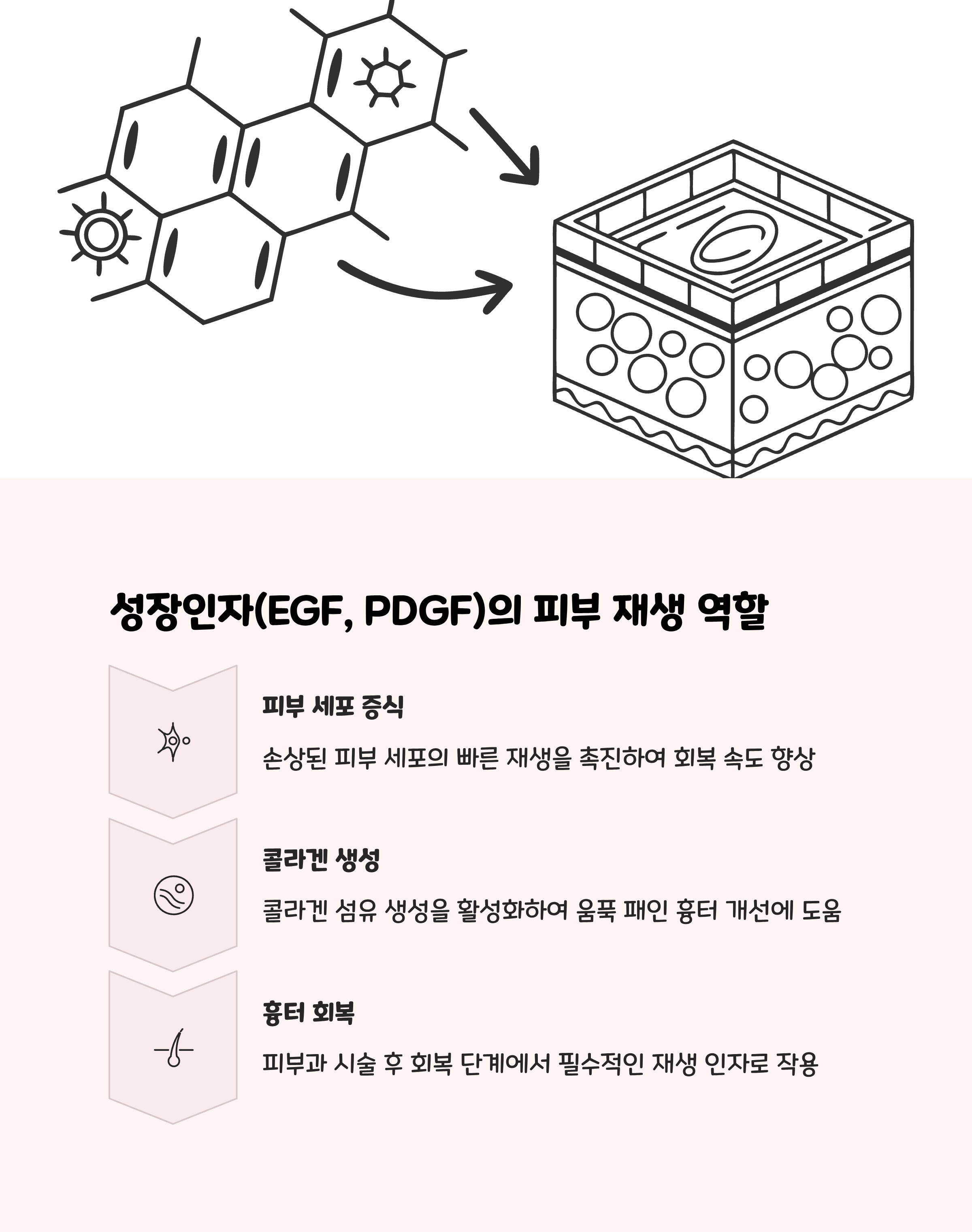 | 성장인자 크림 | 장벽강화·상처 회복 | 일 2회 | 3~5주 | 의학적 성분 선별 |