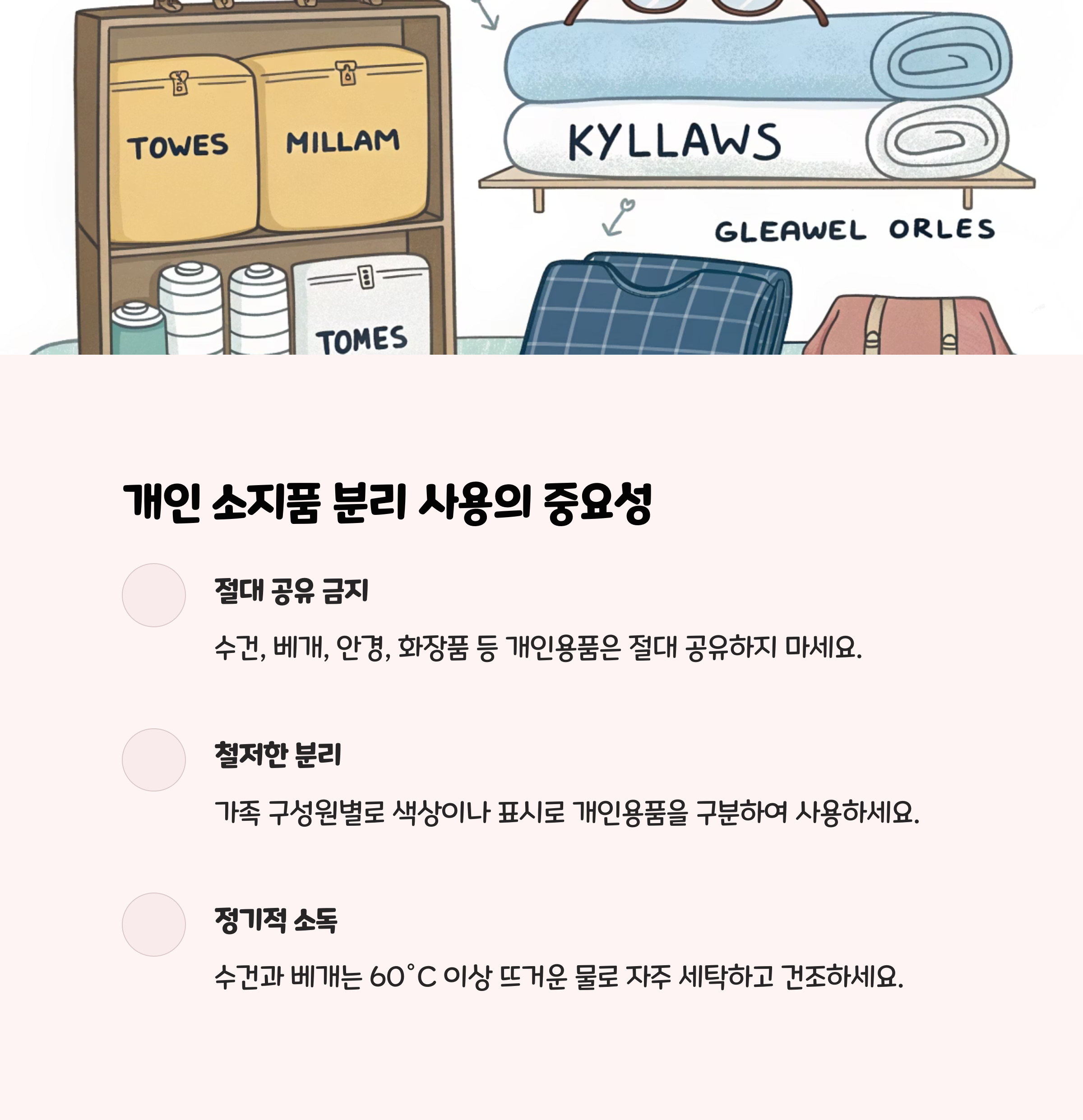 • 수건, 베개, 화장품, 안약 등 공동 사용 금지