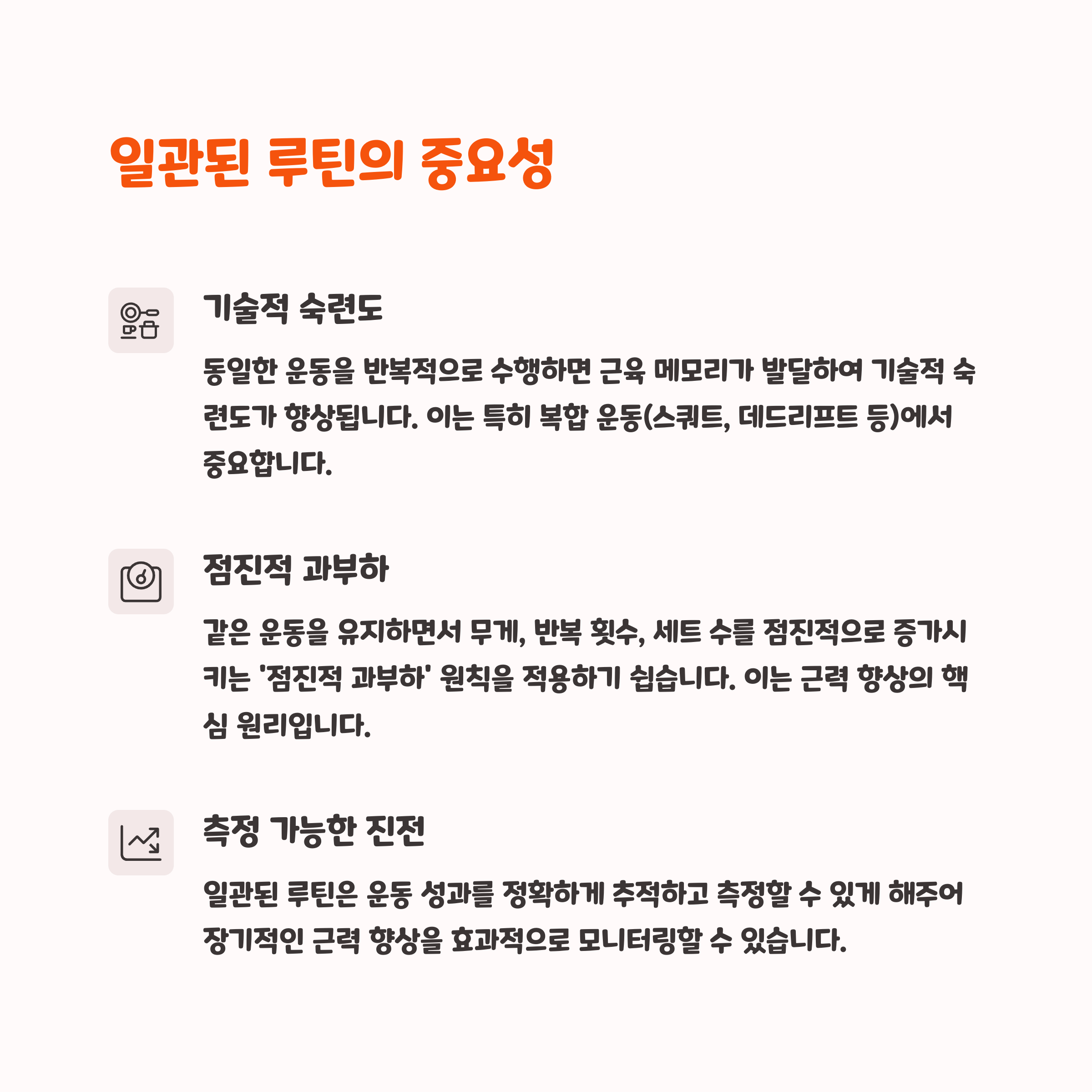 | 일관된 루틴 유지 | 지속적인 근력 향상을 위한 필수 요소 |