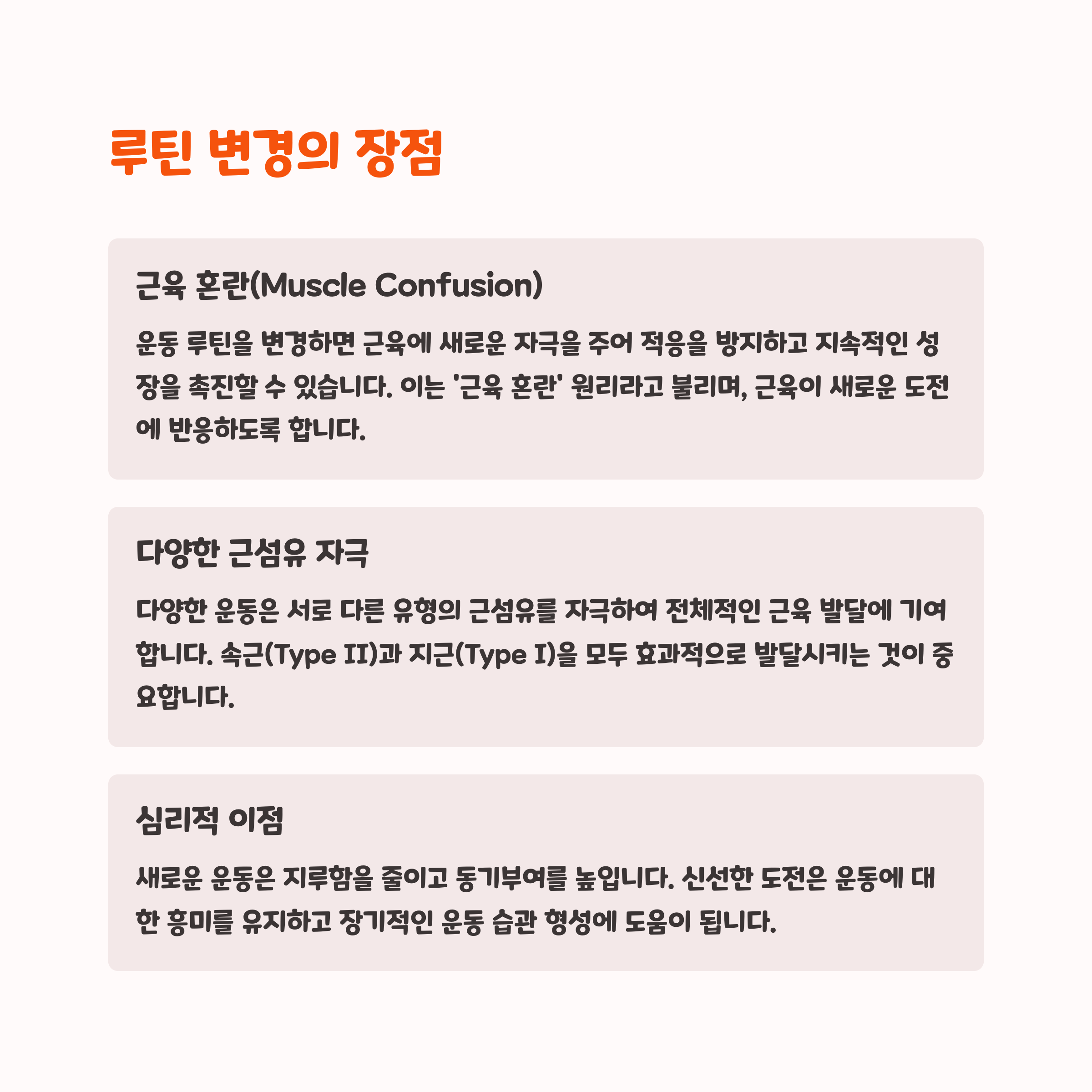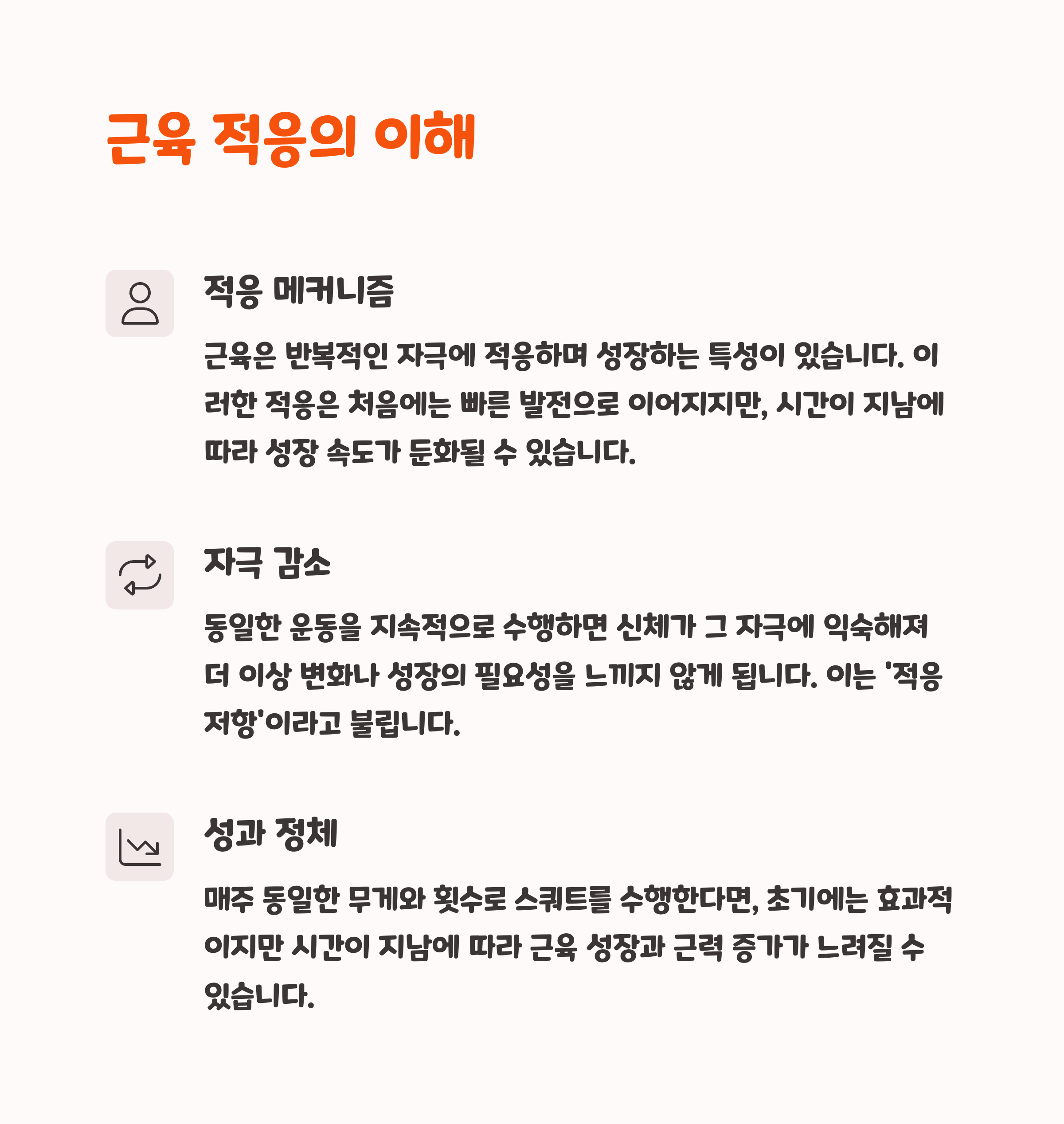 | 근육 적응 | 루틴 변경 | 지속적 훈련 |