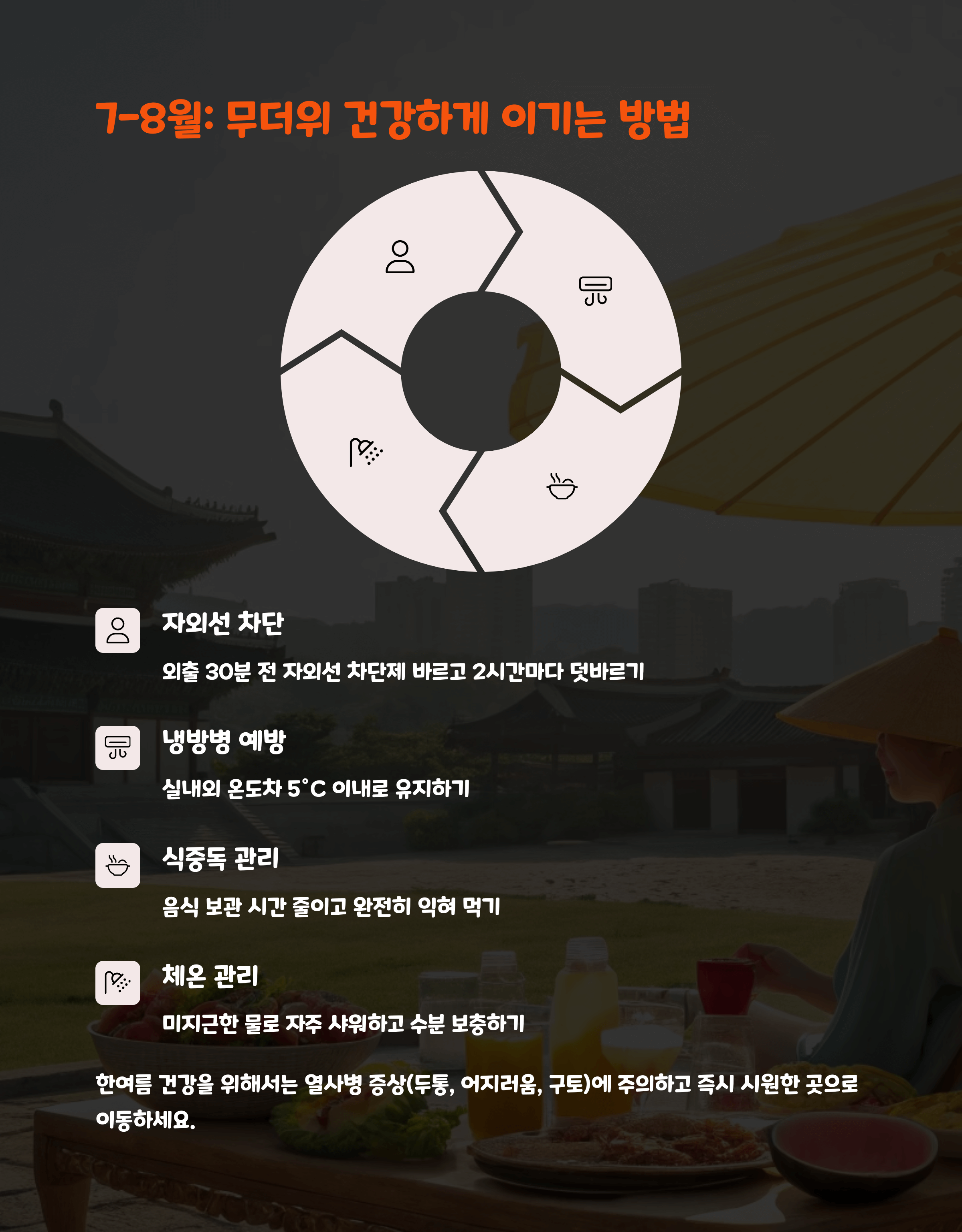 | 여름 건강 관리 | 수분 섭취와 자외선 차단이 필수입니다. |