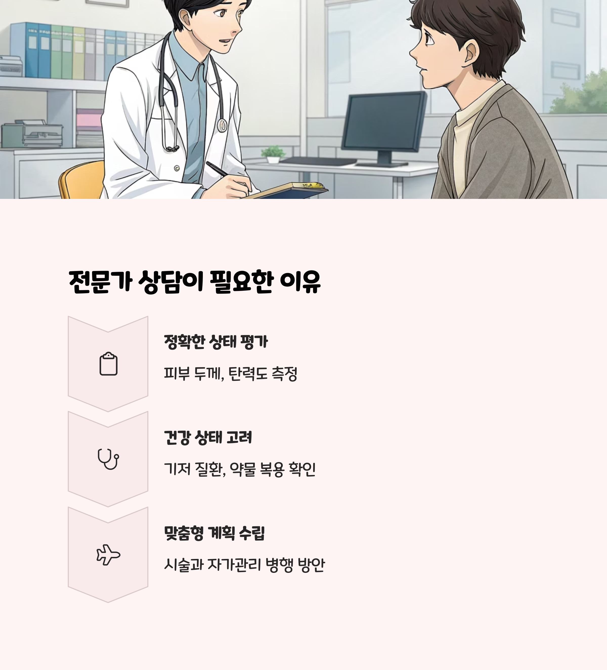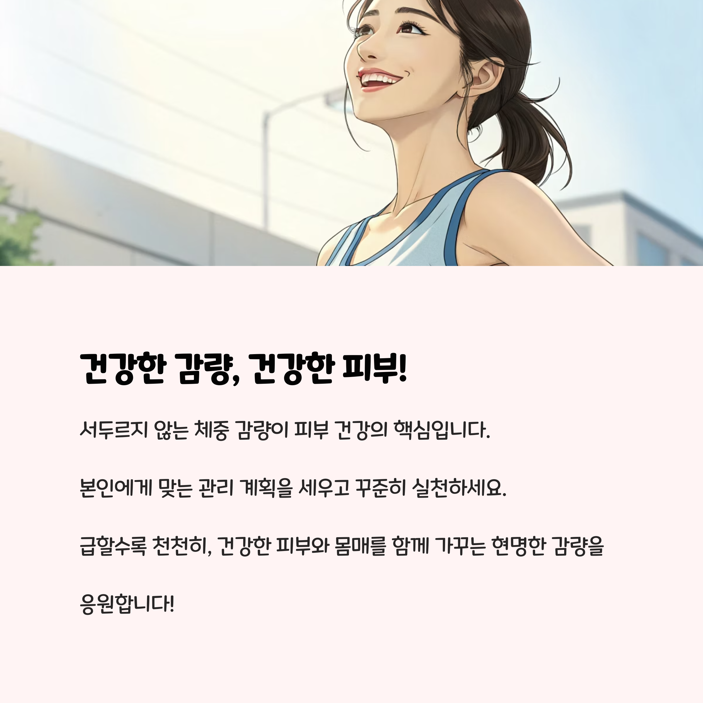 전문가들은 한 달에 5~10% 이상의 체중 감량을 넘지 않도록 하고, 충분한 수분 섭취와 균형 잡힌 식단, 규칙적인 운동을 병행할 것을 강조합니다. 급격한 감량은 피부뿐 아니라 근육 손실까지 유발할 수 있으니, 의료진과 충분히 상의하며 서서히 목표 체중에 도달하는 것이 좋습니다.