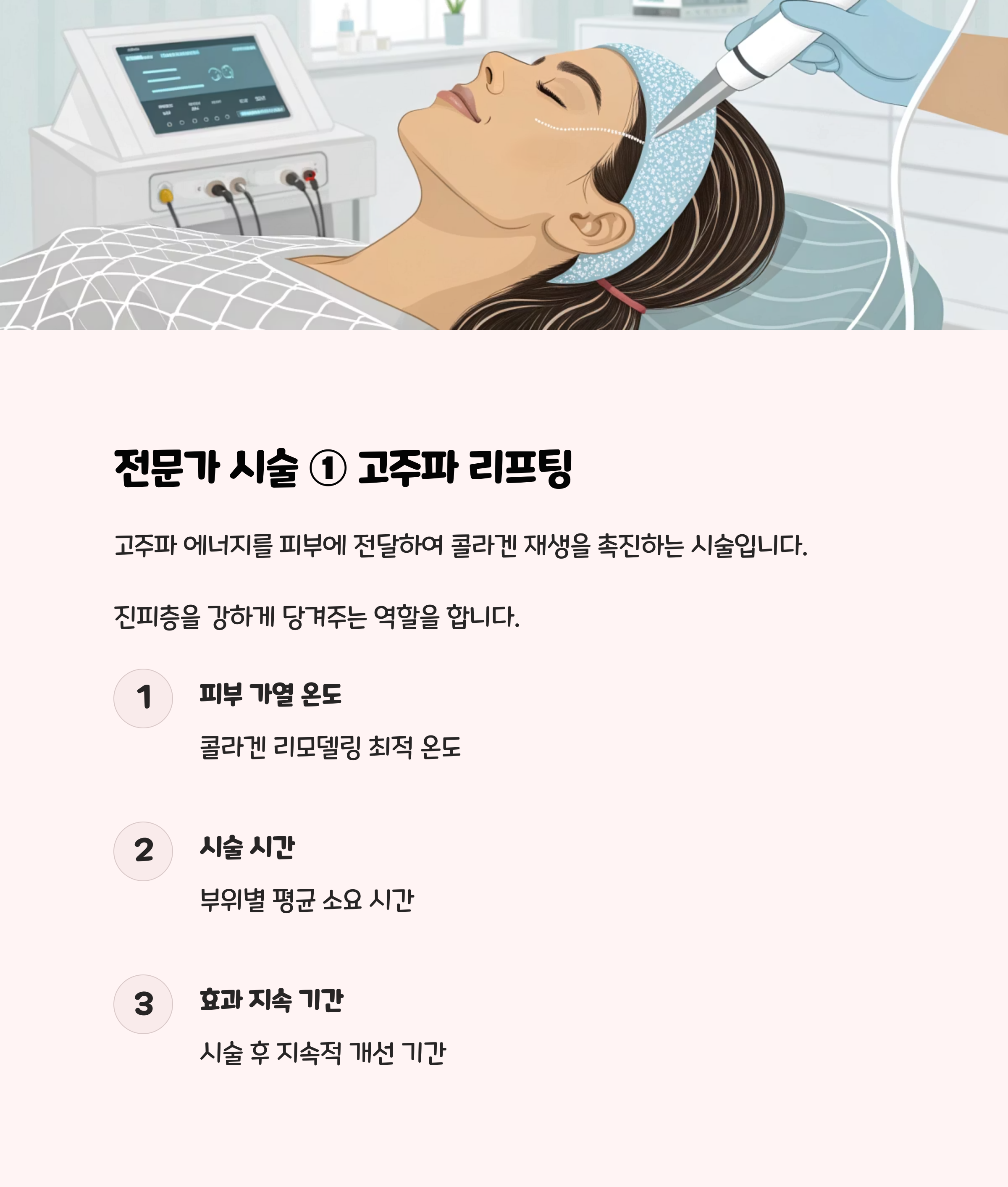 복부, 허벅지, 팔뚝 등 부위별로 고주파·초음파 리프팅 장비를 적절히 선택해 시술하면 부작용을 최소화하고 효과를 높일 수 있습니다.