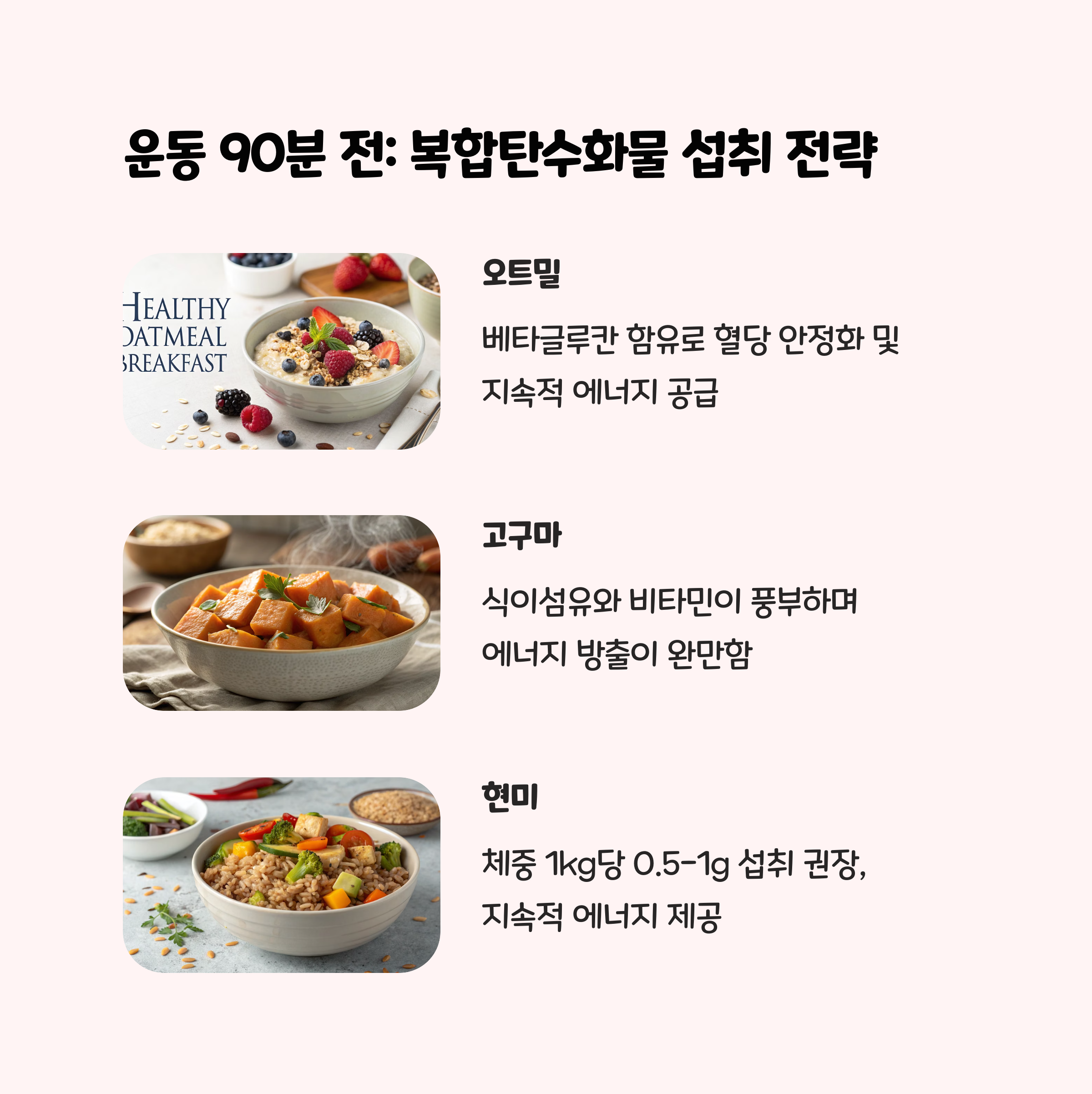 복합탄수화물 현미·고구마 운동 90분 전 혈당 지수 55 이하로 서서히 에너지 방출