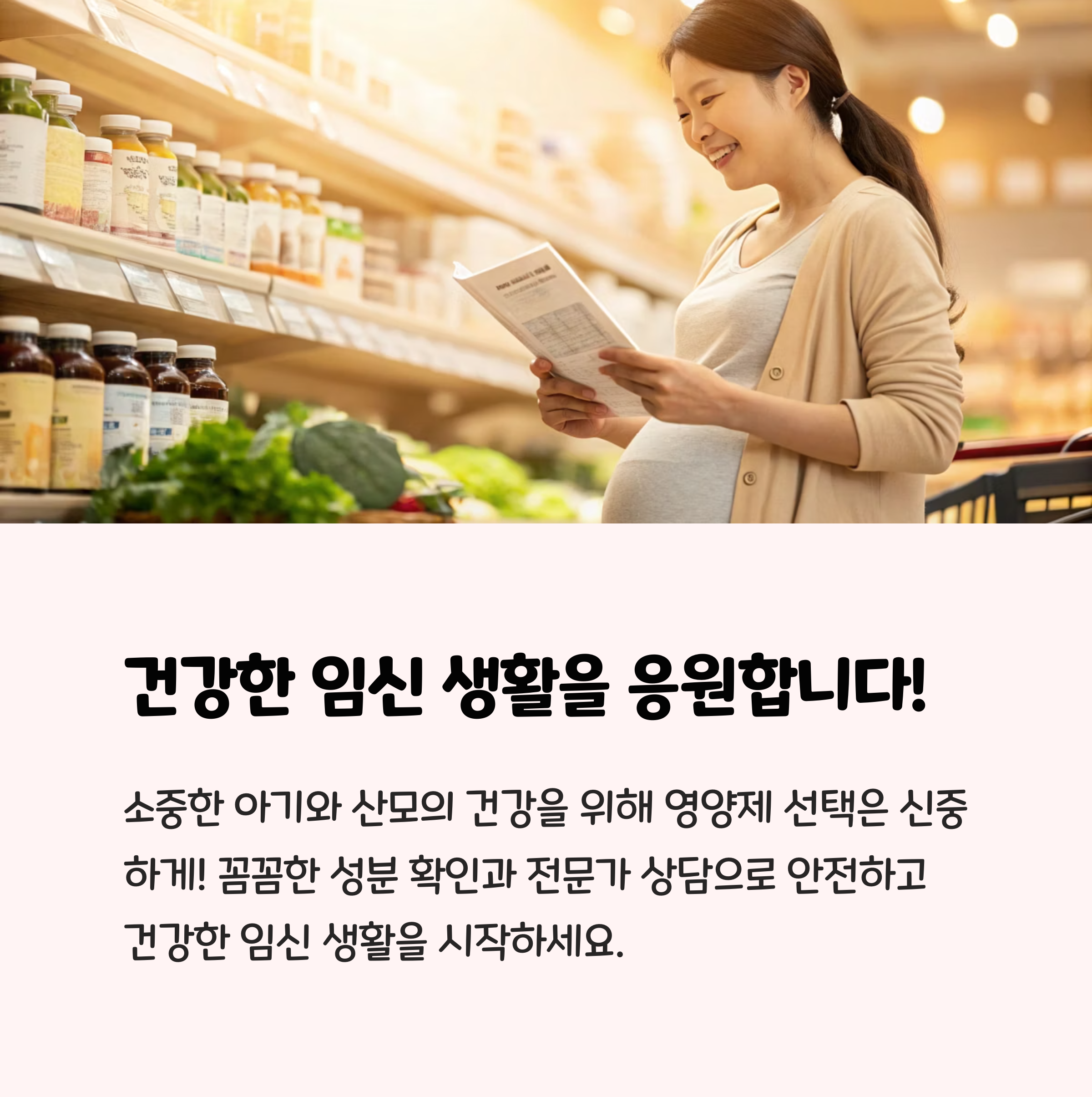 • 임신부가 철분, 엽산, 칼슘 등 필수 영양소를 음식만으로 충분히 섭취하기 어렵다면, 반드시 안전성이 검증된 임산부 전용 영양제를 선택해야 합니다.