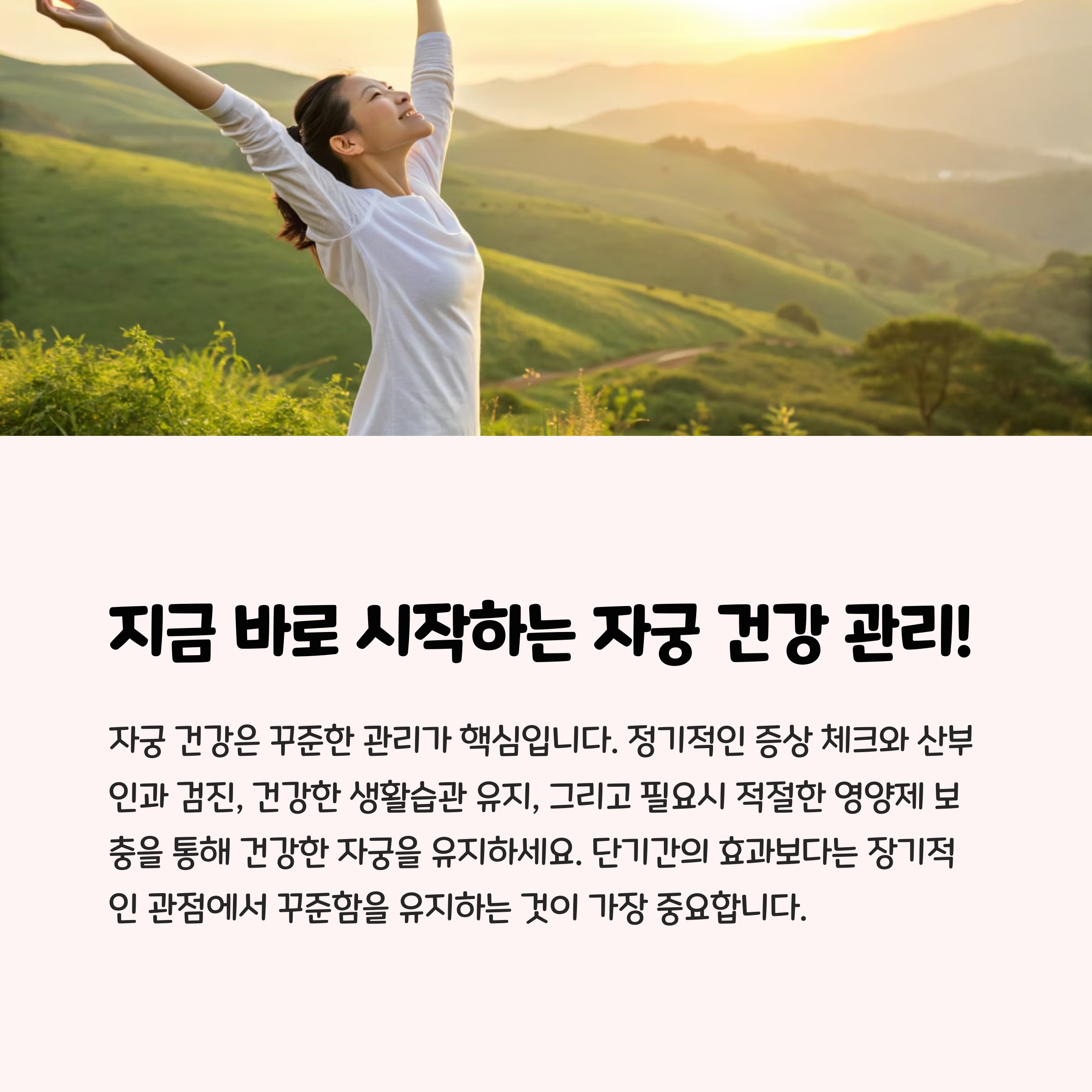 자궁 건강은 단순히 한 기관의 문제가 아니라, 여성의 전반적인 면역력, 호르몬 균형, 삶의 질과도 밀접하게 연결되어 있습니다. 자궁 질환은 재발이 잦고, 만성화될 수 있어 예방과 관리가 필수입니다. 영양제는 식이로 충분히 보충하기 어려운 영양소를 효과적으로 공급해 주며, 자궁과 질의 환경을 개선하는 데 도움을 줄 수 있습니다.