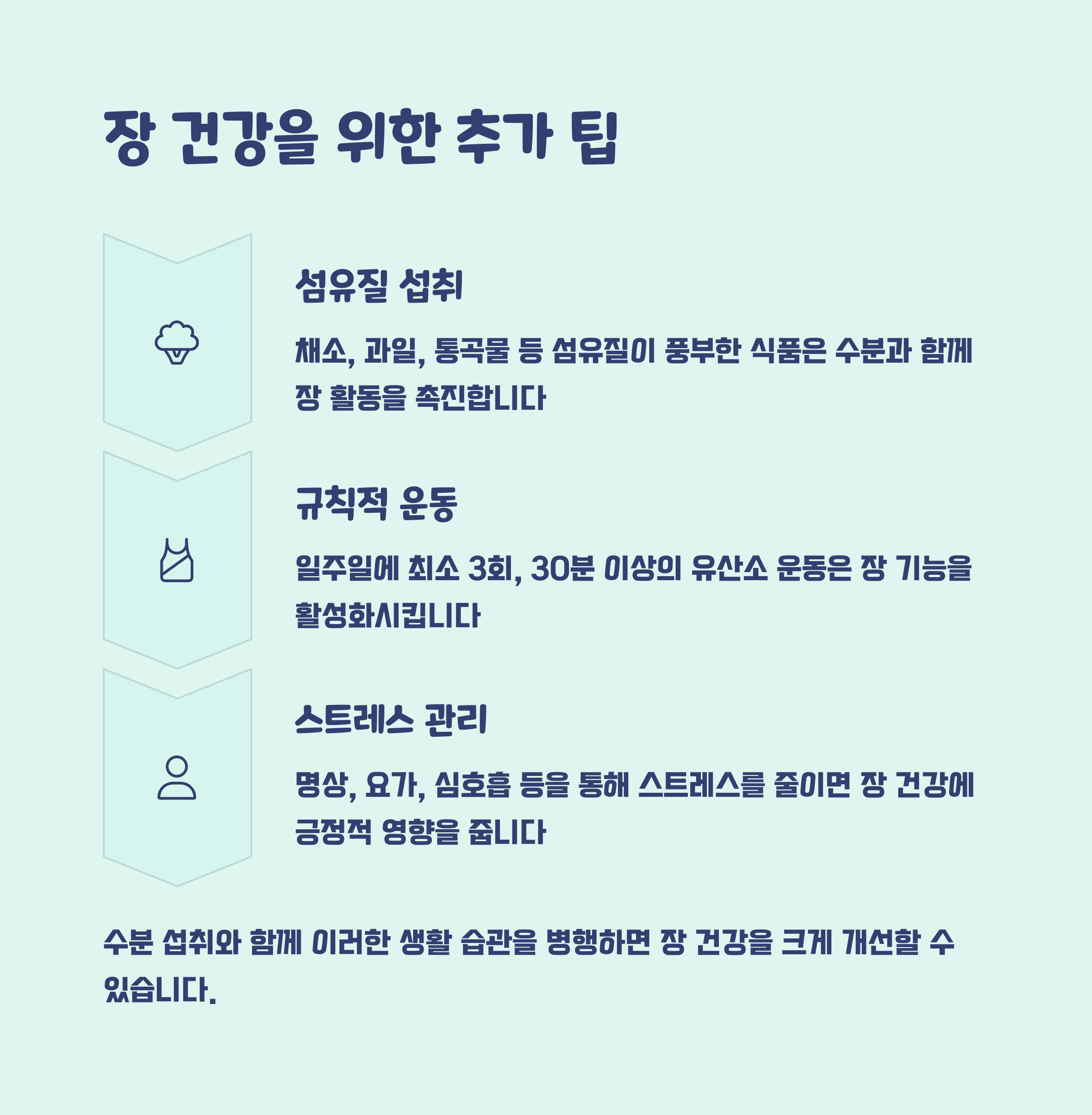 장 건강 개선을 위해 수분 외에 무엇을 더 해야 하나요?