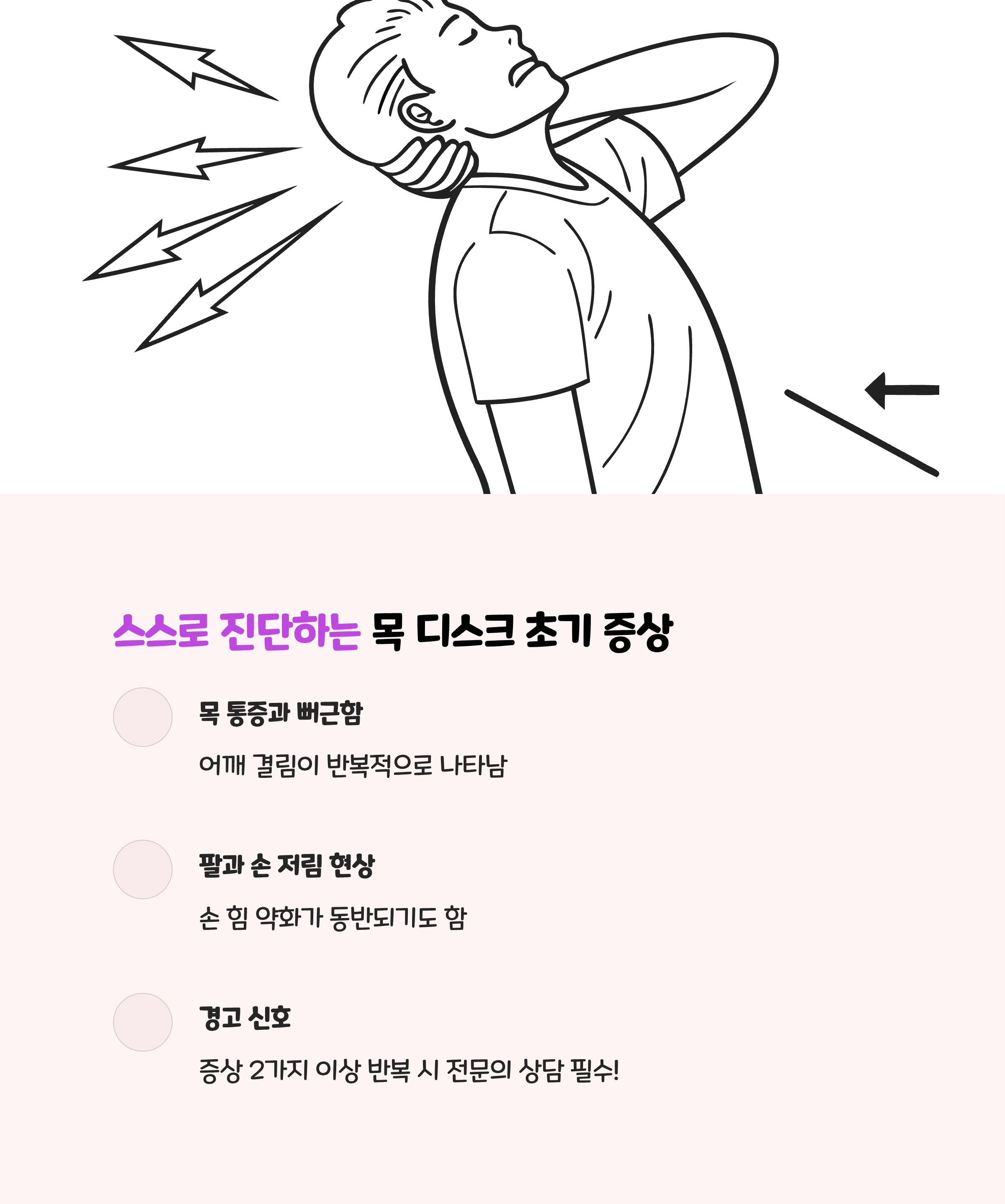 - 통증이나 저림이 심할 땐 반드시 전문의 상담 필수