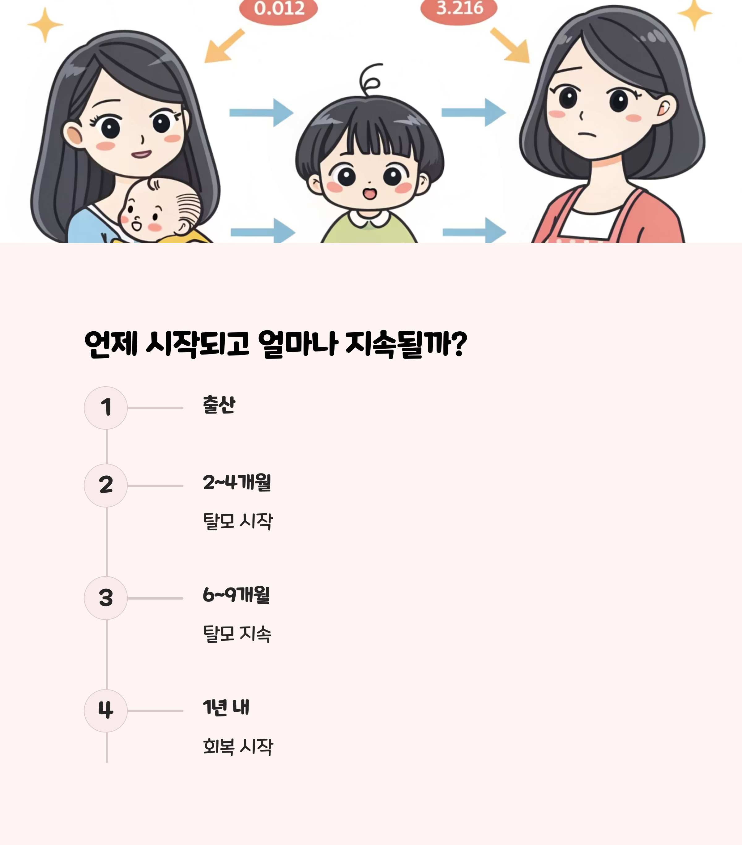 출산 후 탈모는 언제부터 시작되고 얼마나 지속되나요?