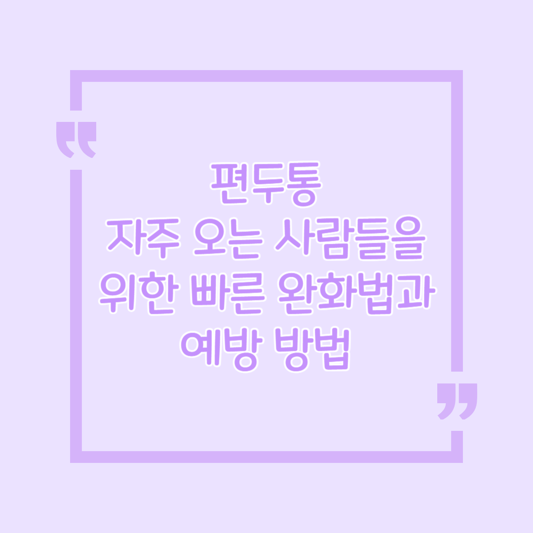 | 생활 습관 개선 | 규칙적인 수면, 스트레스 관리, 카페인/알코올 조절 | 편두통 빈도가 적어도 격심한 경우 |