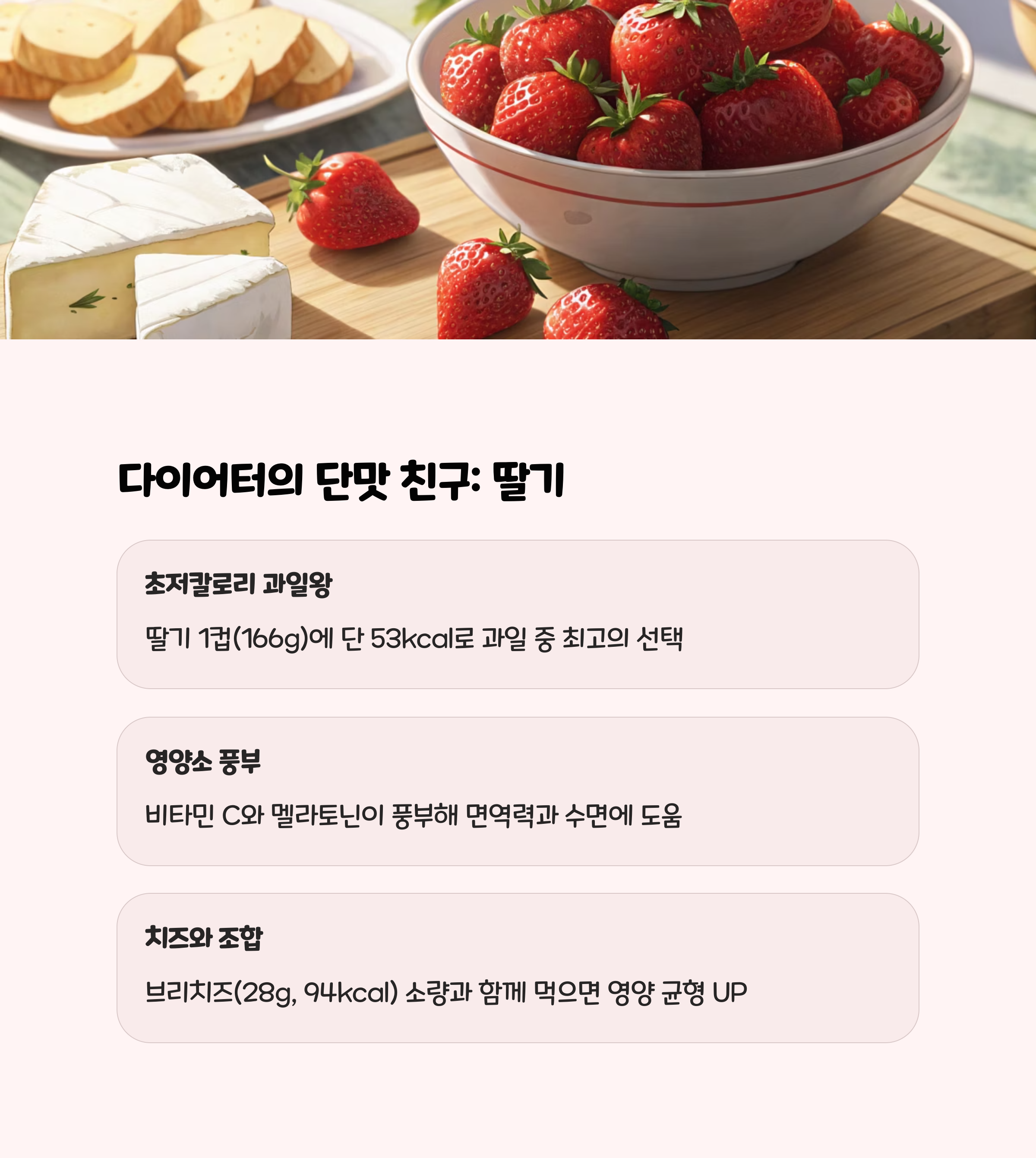 - 견과류 한 줌(20~30g): 아몬드, 호두, 캐슈넛 등은 불포화지방산과 단백질, 식이섬유가 풍부해 포만감을 높여줍니다. 칼로리는 120~180kcal 내외로, 너무 많이 먹지 않도록 주의하세요.