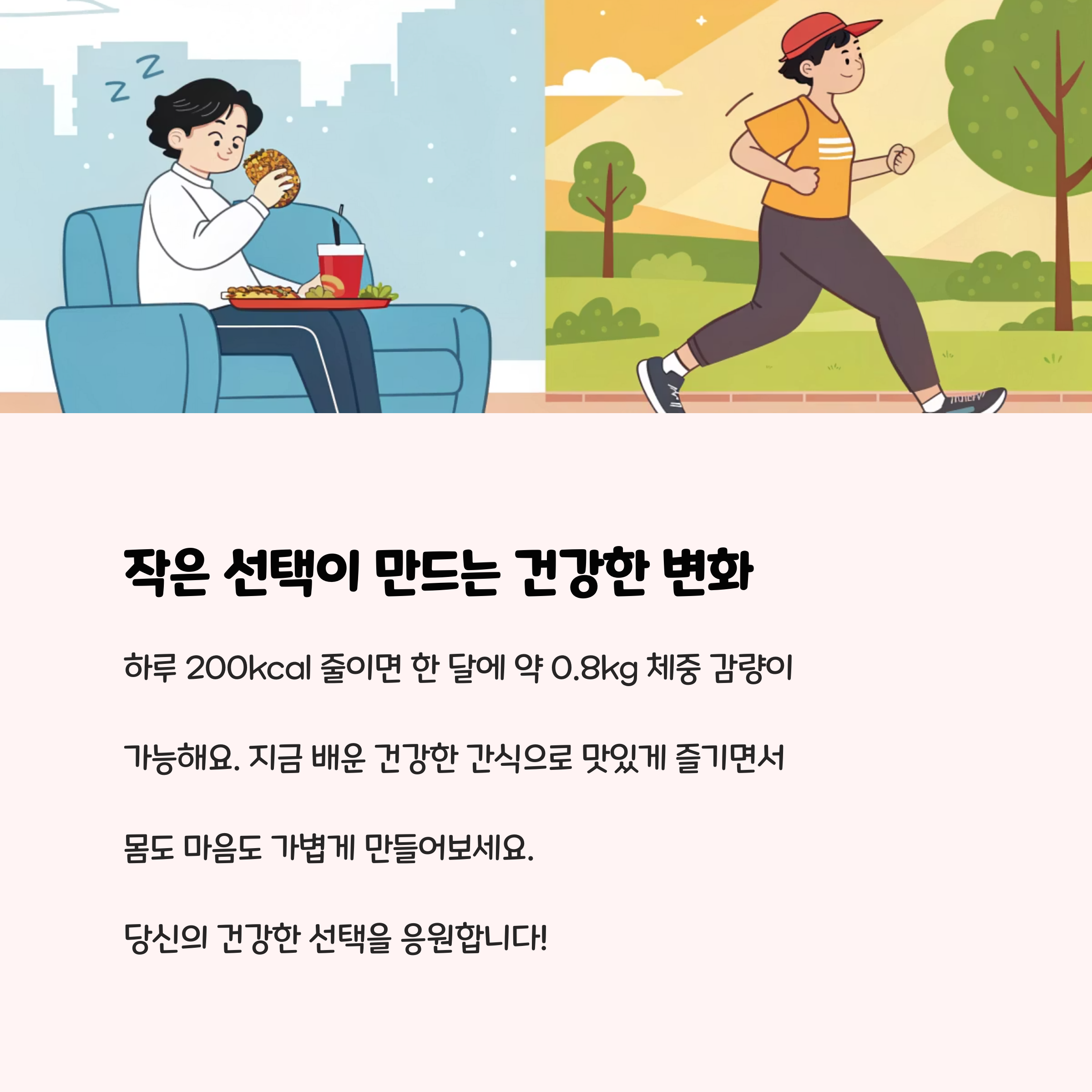 하루 1~2회, 총칼로리를 200kcal 이하로 조절하면 부담 없이 즐길 수 있어요. 과식이나 하루 여러 번 간식 섭취는 피하고, 식사와 간식의 균형을 맞추는 것이 중요합니다.