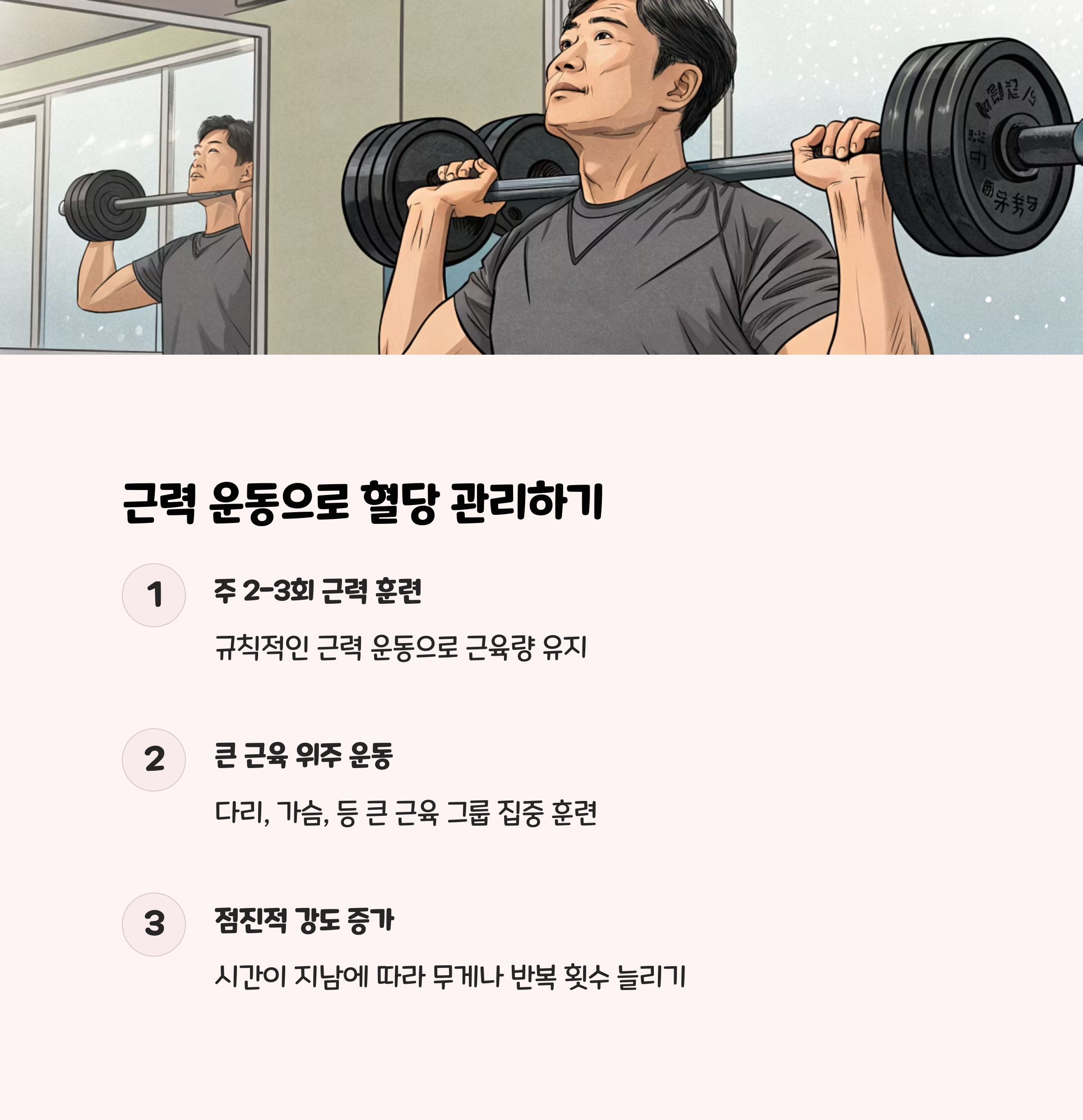 - 하루 30분 이상 걷기, 자전거, 수영 등 유산소 운동을 꾸준히 하세요. 근력운동도 병행하면 근육량 유지에 도움이 됩니다.