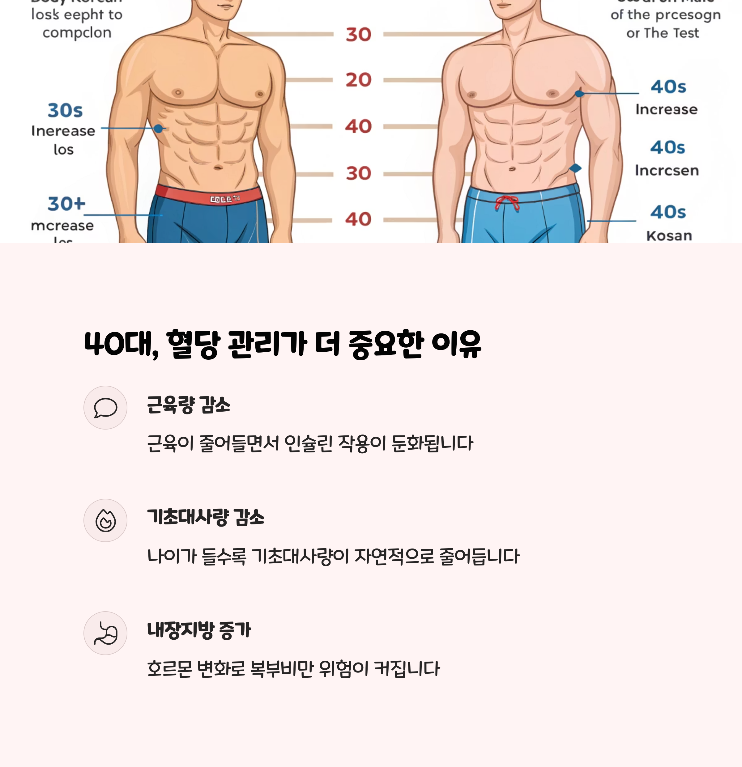 40대 이후에는 인슐린 저항성 증가, 근육량 감소, 대사 기능 저하 등으로 혈당이 쉽게 올라가고, 관리가 어려워집니다. 대한당뇨병학회에 따르면, 혈당을 제대로 관리하지 않으면 심장마비, 뇌졸중, 신장질환, 신경합병증 등 심각한 만성질환의 위험이 높아집니다.