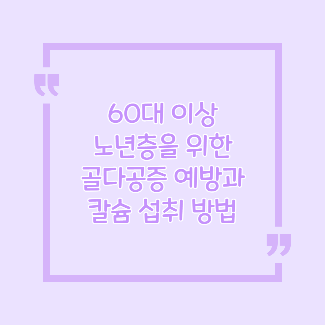 노년기에 접어들며 골다공증 예방은 건강한 생활을 유지하는 데 매우 중요합니다. 특히 60대 이상은 뼈가 약해지기 쉬워 골절 위험이 높아지므로 철저한 뼈 관리가 필요합니다. 효과적인 칼슘 섭취법과 규칙적인 운동, 건강한 식습관은 골다공증 예방의 핵심입니다. 본 글에서는 노년층을 위한 골다공증 예방법과 칼슘 섭취 요령을 체계적으로 정리해 안내해 드리겠습니다.